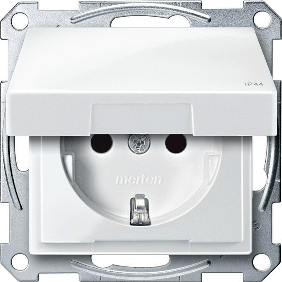 Розетка Schneider Electric SYSTEM M, скрытый монтаж, с заземлением, с крышкой, со шторками, белый, MTN2314-0319